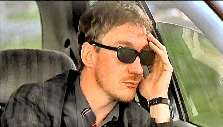 Showing his ever-so-increasingly disinterested mates trailers from his many bad (his word/sentiment) films on his phone.
